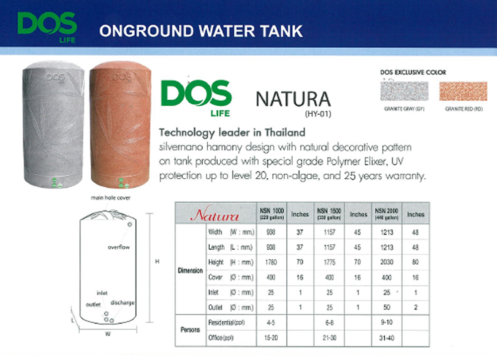 1000 Liter DOS Life Combac Nano Onground Water Tank (Natura)